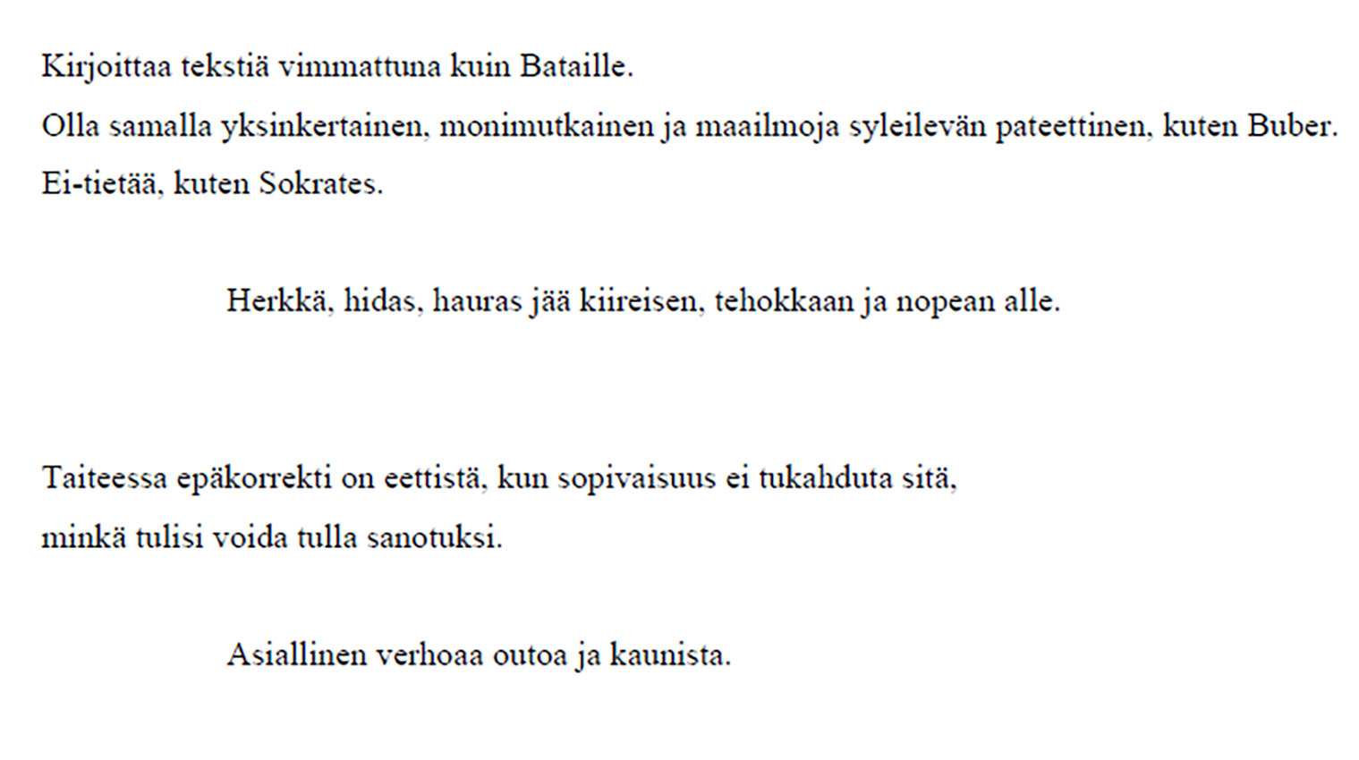 Runo: Kanerva Kartano, Ylimääräisiä ajatuksia 1.